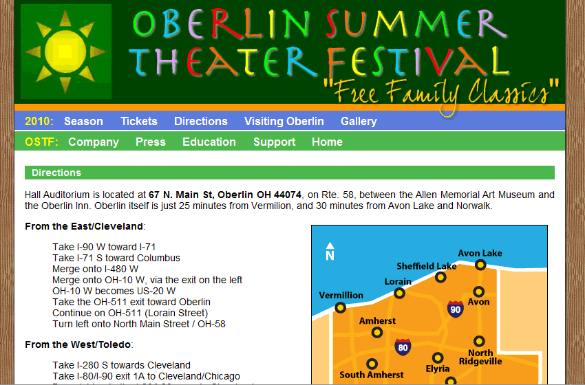 Oberlin Summer Theater Festival – Reorganization and redesign using an existing logo for a professional theater company in Northeast Ohio.